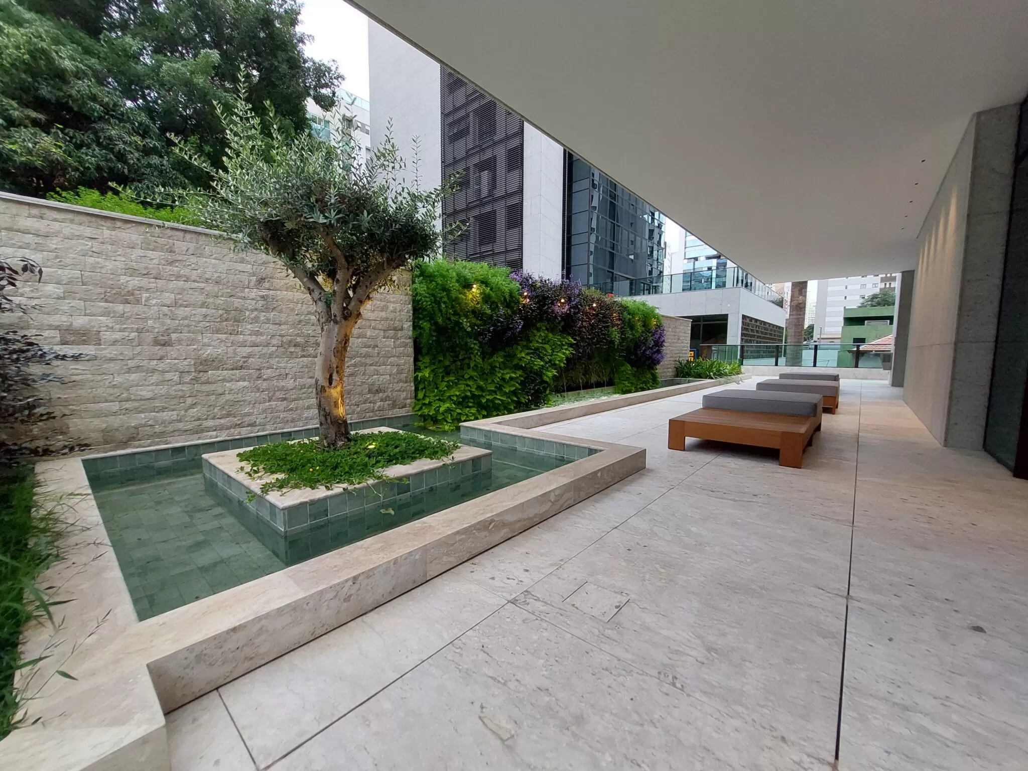 PISO ELEVADO EM MÁRMORE NO PILOTIS